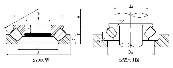 該類軸承主要應(yīng)用于承受以軸向負荷為主導的軸、徑向聯(lián)合負荷,單徑向負荷不得超過軸向負荷的55%,與其他推力滾子軸承相比,此種軸承摩擦系數(shù)低,極限轉(zhuǎn)速高,且具有調(diào)心性能,本型錄所列29000型推力調(diào)心滾子軸承為經(jīng)過優(yōu)化設(shè)計的加強型軸承,此種軸承的球面滾子為非對稱性球面滾子,能減少滾子和滾道在工作中的相對滑動,并且滾子長、直徑大、滾子數(shù)量多、負荷容量高,通常采用油潤滑,轉(zhuǎn)速較低時也可脂潤滑。
